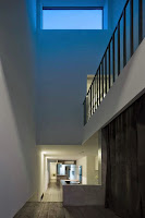 Along the passageway, floor covering level windows incorporate light and lead you through the living and parlor territories, to the raised learn at the end. A window offers a sumptuous green viewpoint, promptly warming up these cool, contemporary internal parts with some consistent scene. Basically on the inverse side of the glass, a little yet sweet walled in area gives this urban home a bit of private green space. The home doesn't issue with misused space as dividers. Measuring 89 ft. from end to end, internal parts have a kitchen arrange yet gloat an open feel, by virtue of their open thought configuration and tall tops. Shiga Narrow Urban Promenade House Design With Concrete Walls And Upper Bridge